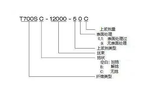 先看看图片中对于碳纤维牌号参数的逐个解析,图片中是牌号T700S的碳纤维。下方的表格这是各个参数对应的数值和定义。