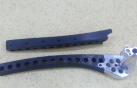目前,国内较为常见的碳纤维增强peek复合材料产品大多属于短切碳纤维或碳纤维粉末增强类型,不过在骨科临床使用过程中发现,短切碳纤维增强peek复合材料制作成的骨外固定器等容易发生孔位偏移等问题,特别是在高频率、高载荷的运行中这种缺陷愈发明显。为此,我公司汲取国外同行的先进经验,使用连续碳纤维增强peek作为原材料替代短切碳纤维增强peek,有效地避免了上述问题。