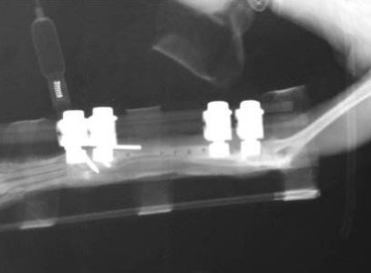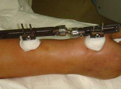 铝合金、不锈钢及碳纤维材料均可用于医用设备,在一定程度上,三者都具有强度高、抗疲劳的优点,可以为骨折处提供即刻稳固作用,临床应用中也都表现出较为理想的生物相容性,是目前骨折临床应用中最为常见的固定材料。但是在实际应用中,采用碳纤维材料制作的骨外固定支架比铝合金、不锈钢支架更轻便,在弹性模量、耐腐蚀性,尤其是X光射线透过性方面表现更好。